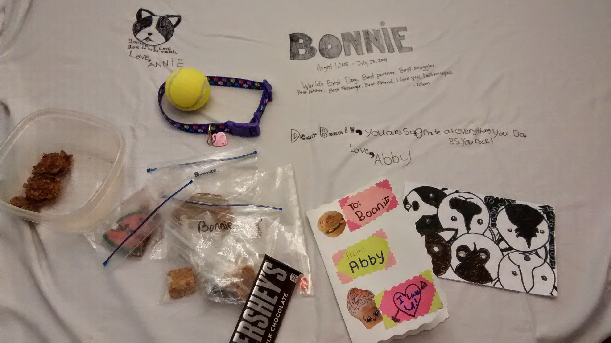 The day after Bonnie died, I spent the day crying uncontrollably. Its only to be expected. I didn’t get much done that day. I wrote “Bonnie is in puppy Heaven” and I took my daughters to the skating rink to try to get their minds off of it. All I could do was cry. I was in public crying. Driving and crying. Doing the dishes and crying. Showering and Crying. Lying in bed Crying. I could see it on my kids faces. The deep sadness sitting just below the surface. We all tried to keep it together but inevitably, we cried.